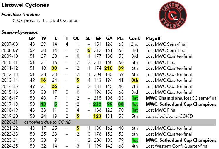 Goals: 36 (twice) Kurtis Bartliff, 2007-08; Brayden Krieger, 2018-19